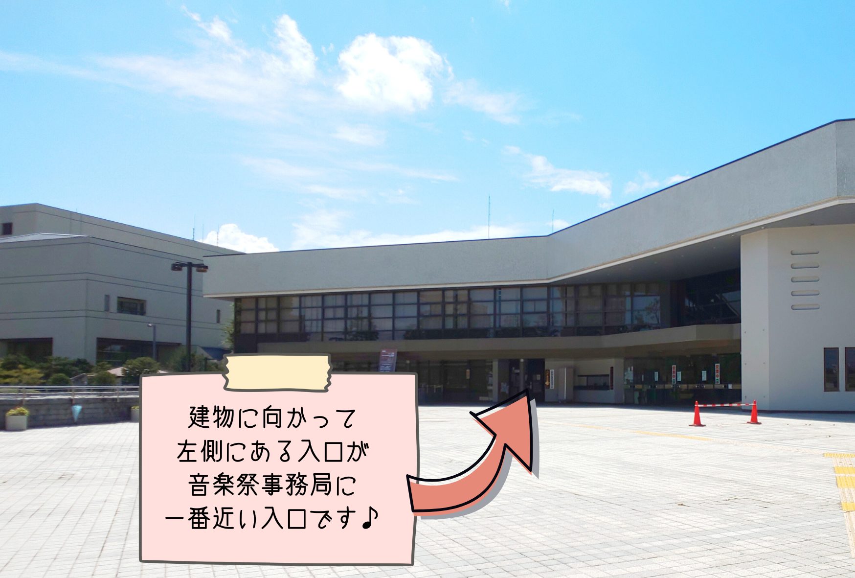 会場入りされましたら、まず「音楽祭事務局」へお声がけください。ホール左側の入口から入るとわかりやすいです。